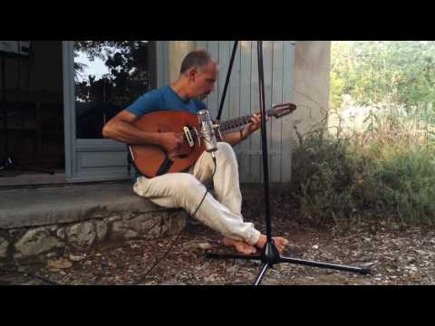 Piers Faccini jouant sur sa Style O National de 1931, modifiée avec des mini-frettes, pour jouer des